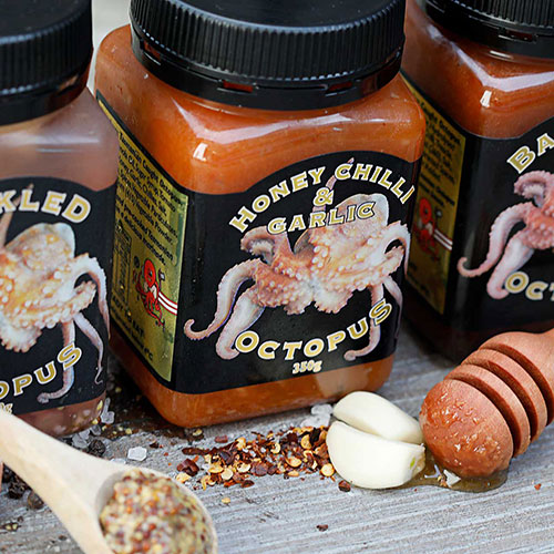 We stock the essentials; Ham, salami and locally pickled octopus.